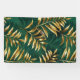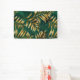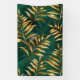 Seamless pattern of gold, jewelry, shiny fern branches and leaves on green, woodland, textured background. Golden fern.