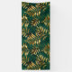 Seamless pattern of gold, jewelry, shiny fern branches and leaves on green, woodland, textured background. Golden fern.
