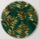 Seamless pattern of gold, jewelry, shiny fern branches and leaves on green, woodland, textured background. Golden fern.