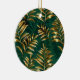 Seamless pattern of gold, jewelry, shiny fern branches and leaves on green, woodland, textured background. Golden fern.