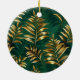 Seamless pattern of gold, jewelry, shiny fern branches and leaves on green, woodland, textured background. Golden fern.