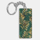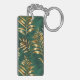 Seamless pattern of gold, jewelry, shiny fern branches and leaves on green, woodland, textured background. Golden fern.