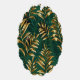 Seamless pattern of gold, jewelry, shiny fern branches and leaves on green, woodland, textured background. Golden fern.