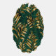 Seamless pattern of gold, jewelry, shiny fern branches and leaves on green, woodland, textured background. Golden fern.