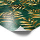 Seamless pattern of gold, jewelry, shiny fern branches and leaves on green, woodland, textured background. Golden fern.
