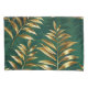 Seamless pattern of gold, jewelry, shiny fern branches and leaves on green, woodland, textured background. Golden fern.