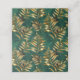 Seamless pattern of gold, jewelry, shiny fern branches and leaves on green, woodland, textured background. Golden fern.