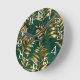 Seamless pattern of gold, jewelry, shiny fern branches and leaves on green, woodland, textured background. Golden fern.