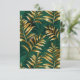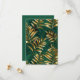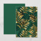 Seamless pattern of gold, jewelry, shiny fern branches and leaves on green, woodland, textured background. Golden fern.