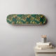 Seamless pattern of gold, jewelry, shiny fern branches and leaves on green, woodland, textured background. Golden fern.