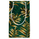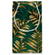 Seamless pattern of gold, jewelry, shiny fern branches and leaves on green, woodland, textured background. Golden fern.