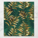 Seamless pattern of gold, jewelry, shiny fern branches and leaves on green, woodland, textured background. Golden fern.