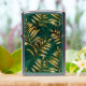 Seamless pattern of gold, jewelry, shiny fern branches and leaves on green, woodland, textured background. Golden fern.