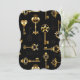 Seamless pattern of antique, gold and silhouette keys on black background.