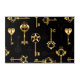 Seamless pattern of antique, gold and silhouette keys on black background.