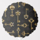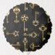 Seamless pattern of antique, gold and silhouette keys on black background.