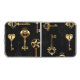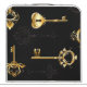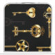 Seamless pattern of antique, gold and silhouette keys on black background.