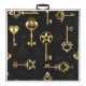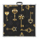 Seamless pattern of antique, gold and silhouette keys on black background.