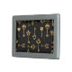 Seamless pattern of antique, gold and silhouette keys on black background.