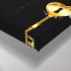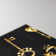 Seamless pattern of antique, gold and silhouette keys on black background.