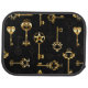 Seamless pattern of antique, gold and silhouette keys on black background.