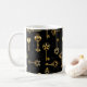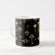 Seamless pattern of antique, gold and silhouette keys on black background.