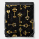 Seamless pattern of antique, gold and silhouette keys on black background.
