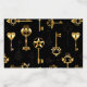 Seamless pattern of antique, gold and silhouette keys on black background.