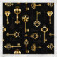 Seamless pattern of antique, gold and silhouette keys on black background.