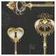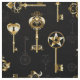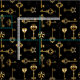 Seamless pattern of antique, gold and silhouette keys on black background.