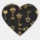 Seamless pattern of antique, gold and silhouette keys on black background.