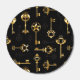 Seamless pattern of antique, gold and silhouette keys on black background.