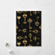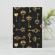 Seamless pattern of antique, gold and silhouette keys on black background.