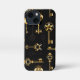 Seamless pattern of antique, gold and silhouette keys on black background.