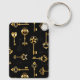 Seamless pattern of antique, gold and silhouette keys on black background.