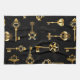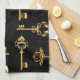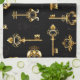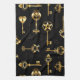 Seamless pattern of antique, gold and silhouette keys on black background.