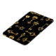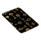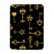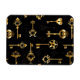 Seamless pattern of antique, gold and silhouette keys on black background.