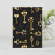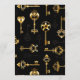 Seamless pattern of antique, gold and silhouette keys on black background.