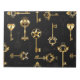 Seamless pattern of antique, gold and silhouette keys on black background.