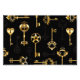 Seamless pattern of antique, gold and silhouette keys on black background.