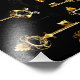 Seamless pattern of antique, gold and silhouette keys on black background.