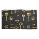 Seamless pattern of antique, gold and silhouette keys on black background.