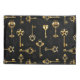 Seamless pattern of antique, gold and silhouette keys on black background.