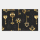 Seamless pattern of antique, gold and silhouette keys on black background.