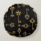 Seamless pattern of antique, gold and silhouette keys on black background.