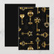 Seamless pattern of antique, gold and silhouette keys on black background.