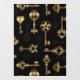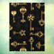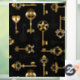 Seamless pattern of antique, gold and silhouette keys on black background.