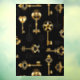 Seamless pattern of antique, gold and silhouette keys on black background.