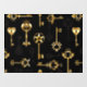 Seamless pattern of antique, gold and silhouette keys on black background.