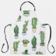 Seamless pattern with green cactus and succulents apron